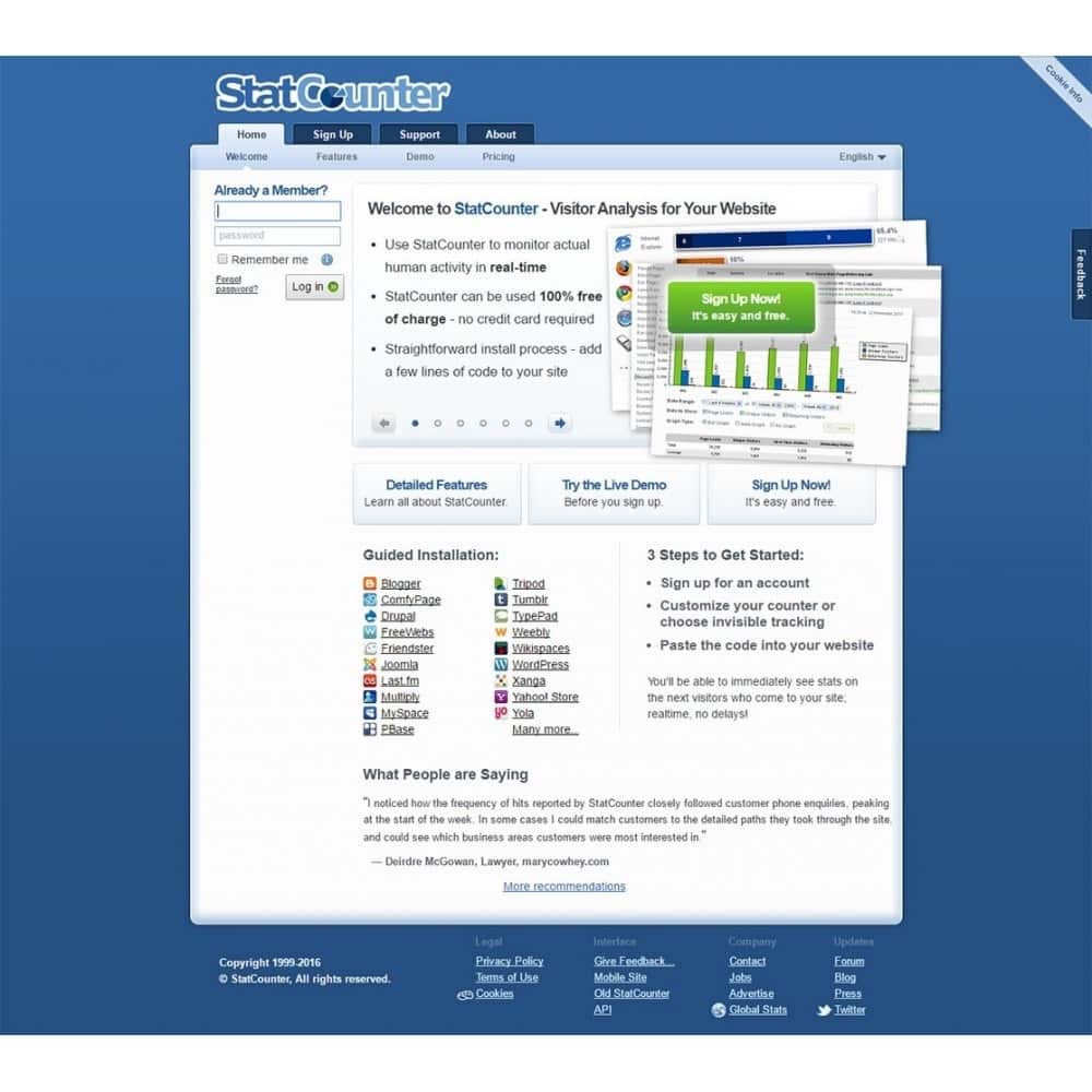 StatCounter es un servicio de análisis web en tiempo real simple pero poderoso que lo ayuda a rastrear, analizar y comprender a sus visitantes para que pueda tomar buenas decisiones